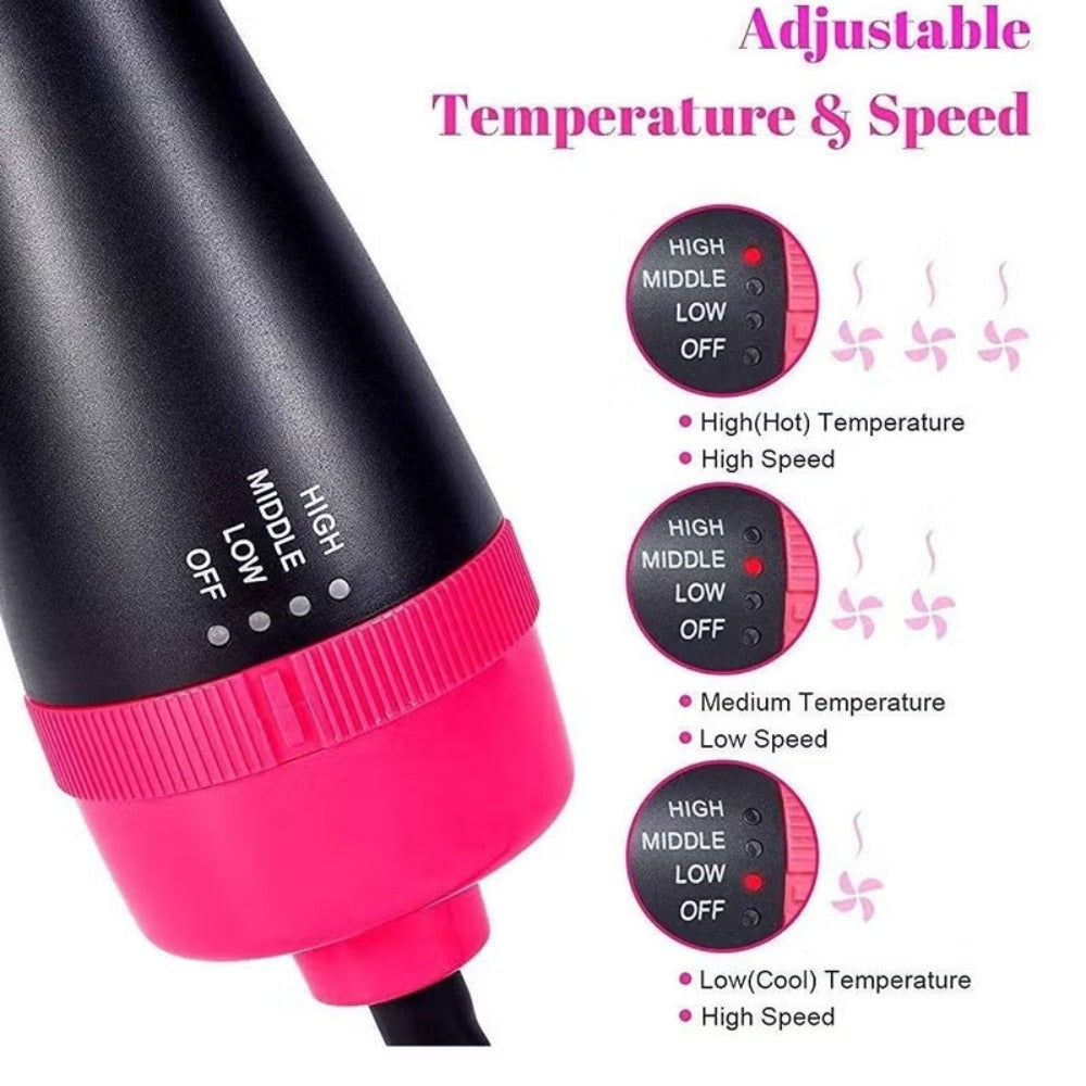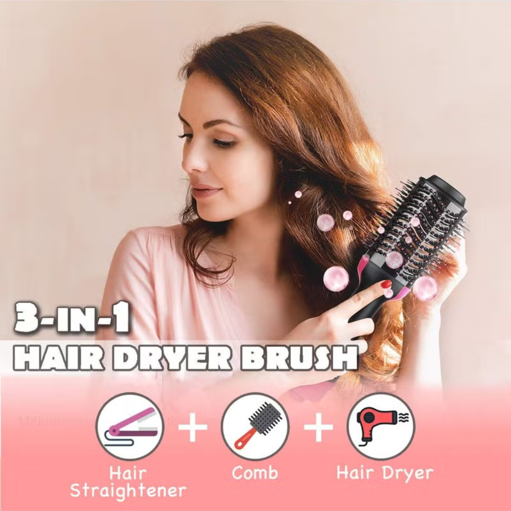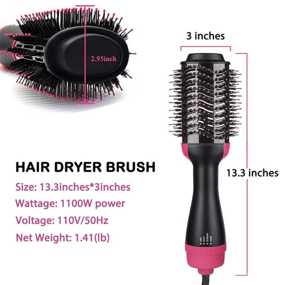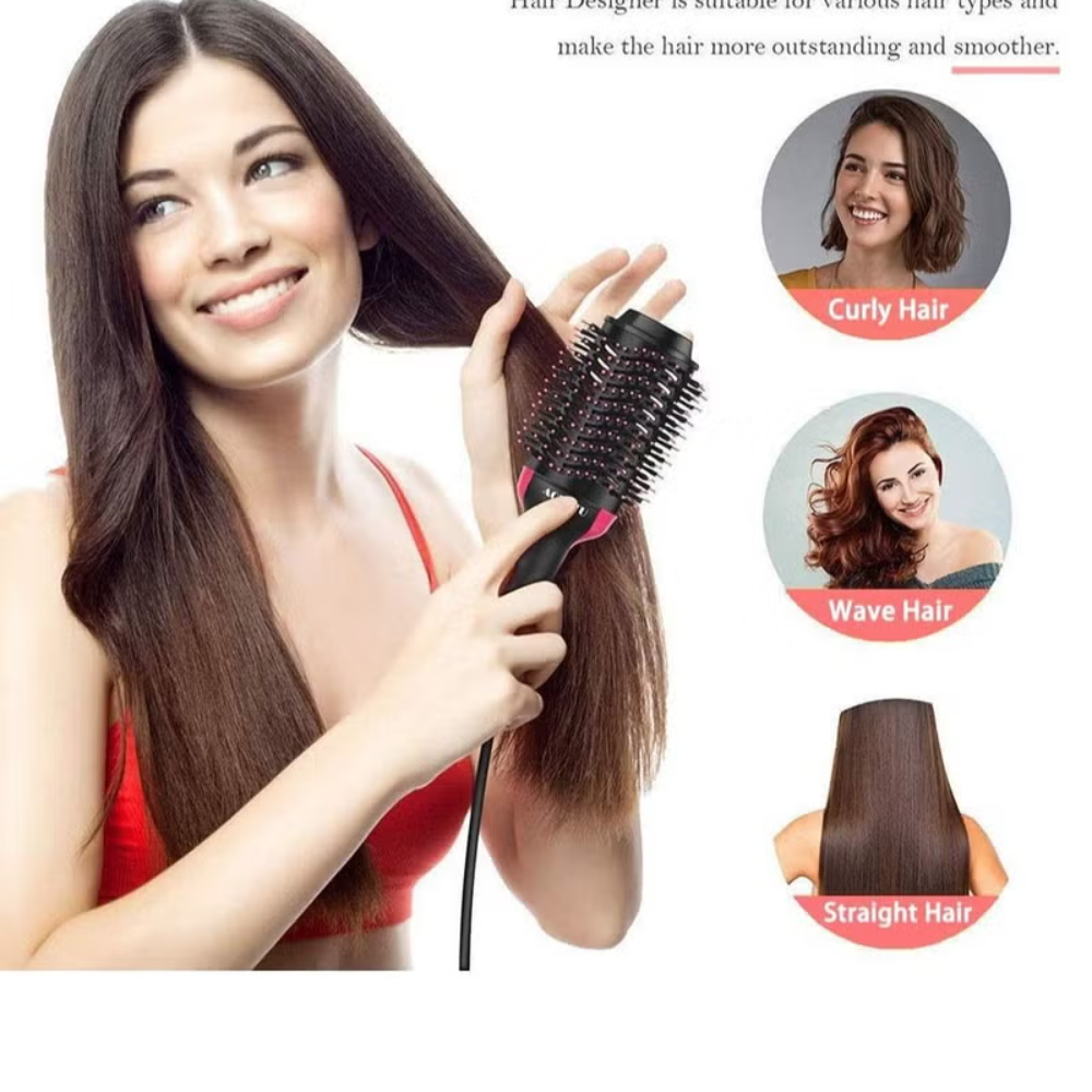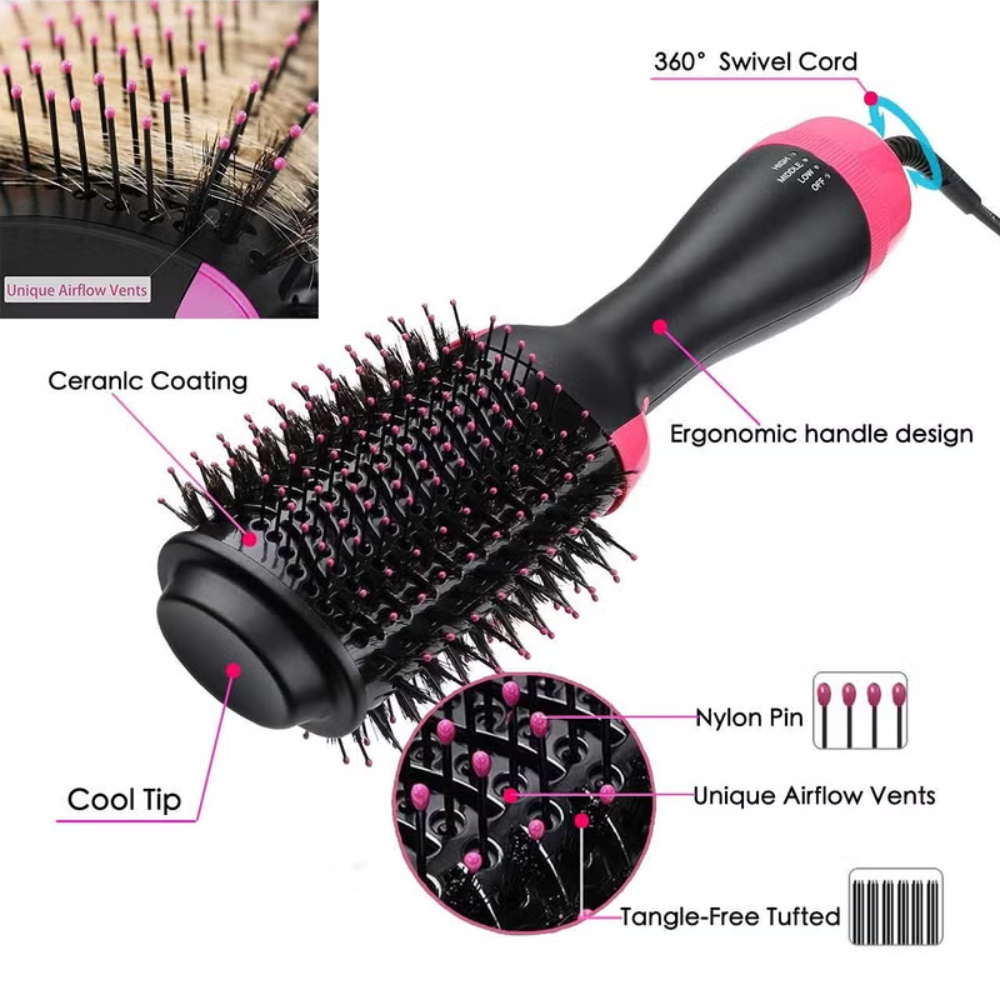 ✨ تصميم 4 في 1: يجمع بين مجفف الشعر، المشط، جهاز التمليس، وجهاز التجعيد في أداة واحدة مذهلة.